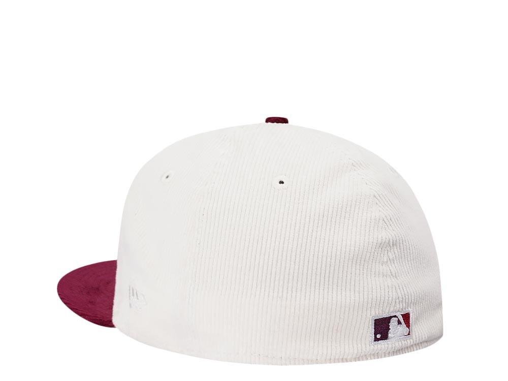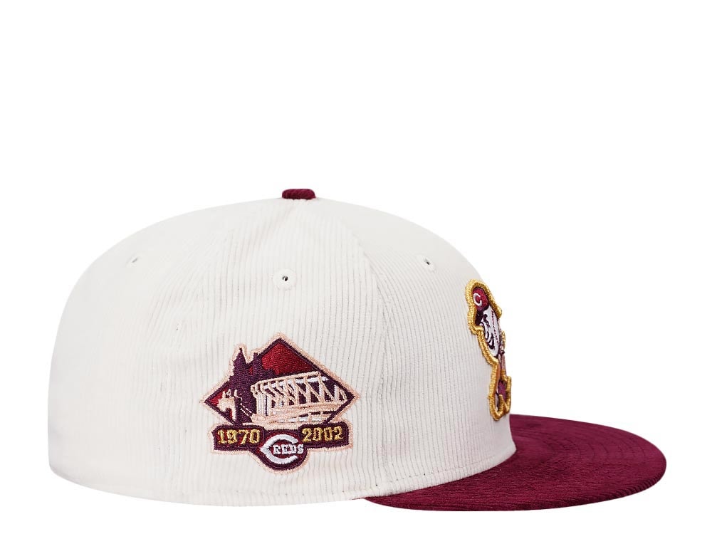 New Era Cincinnati Reds Riverfront Stadium Cream Merlot Two Tone Corduroy Edition 59Fifty Fitted Gorra