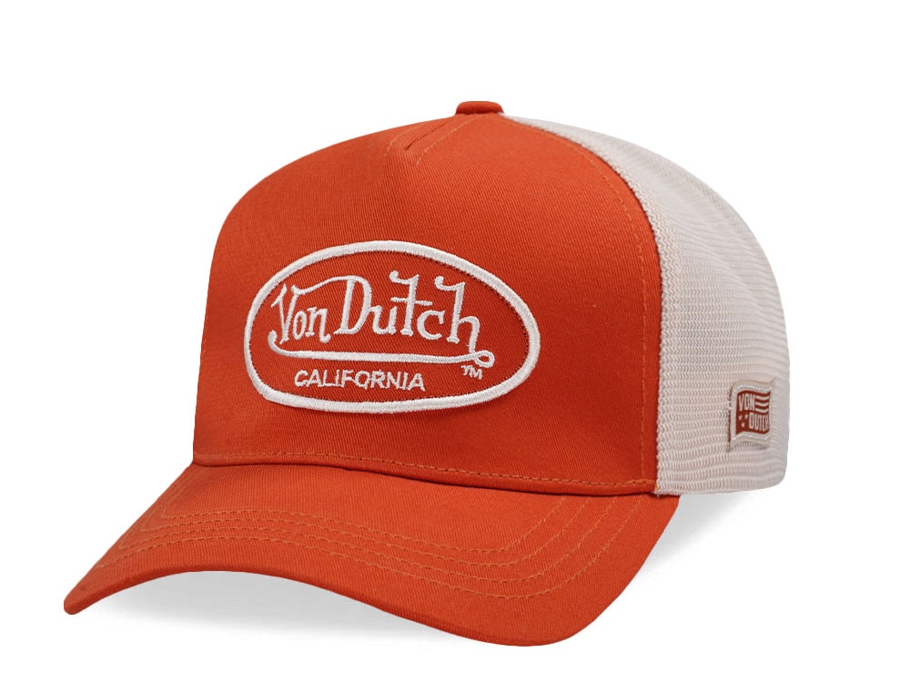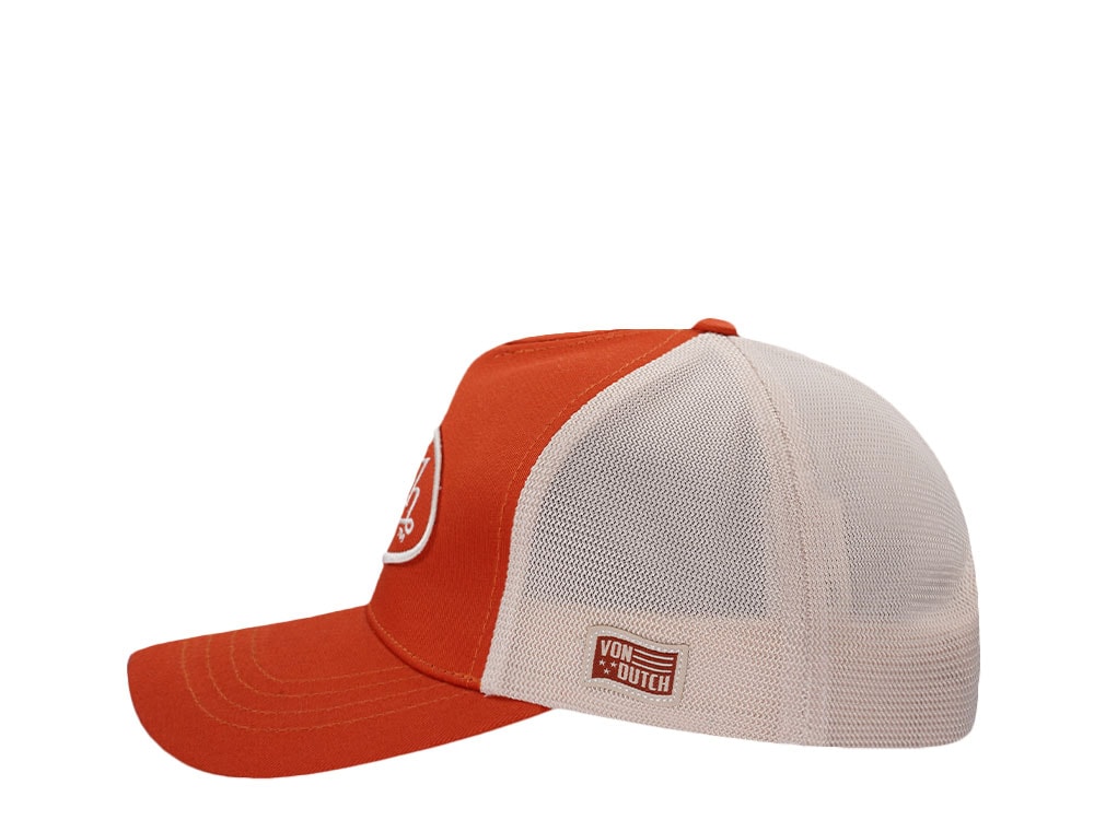 Von Dutch Embroidered Oval Patch Orange Trucker Strapback Gorra