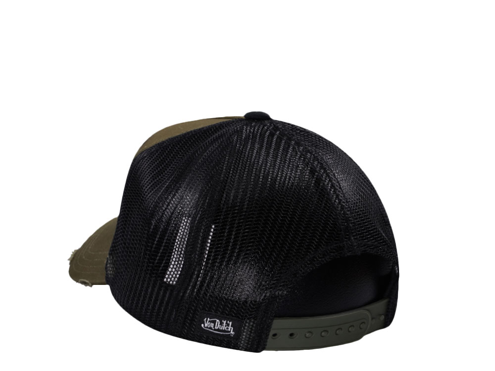 Von Dutch Square Patch Distressed Olive Trucker Snapback Gorra
